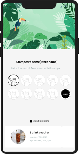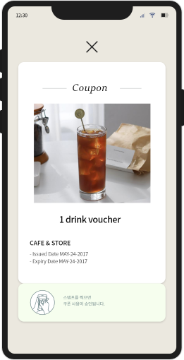 그것으로 당신의 고객들이 매장을 다시 방문하게 하고, 스마트폰 화면에 도장을 찍어서 쿠폰을 인증합니다.